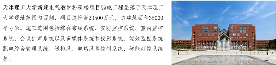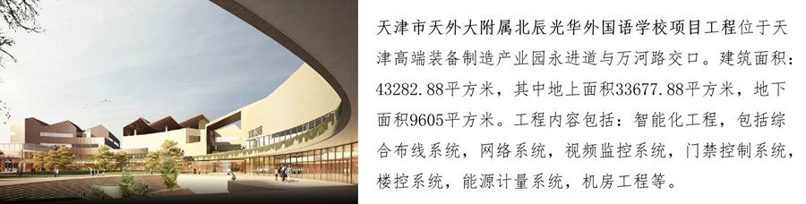 工程总造价14000万元,坐落于天津市武清商务区国际企业社区。建设包含综合布线系统、智能化系统、智能楼宇控制系统、安防监控系统、计算机系统、环境智能控制系统等